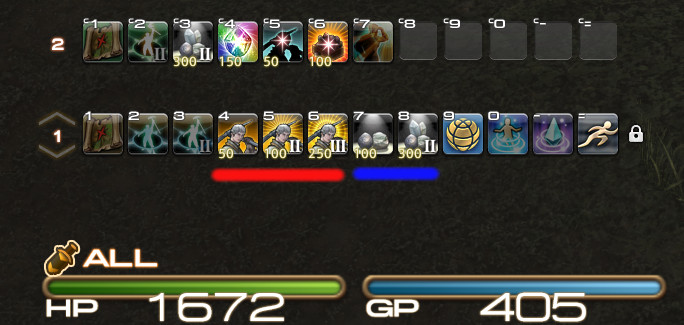 The Sneak ability is another useful one you get early on when levelling Mining and Botany. Once activated you become invisible to mobs up to 4 levels higher than you. This lets you stroll past agressive mobs and mine or gather herbs without interference. Later on you get an Auto Sneak trait (passive ability) that automatically turns Sneak on when you go into Mining or Botany jobs.