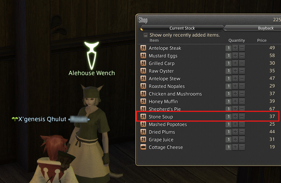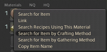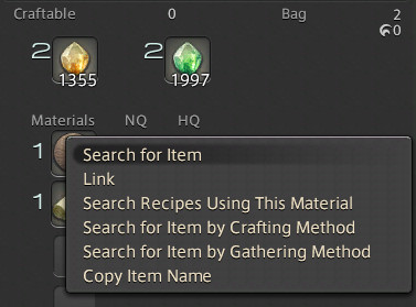 I might find some in my chocobo saddlebag, or in my retainers’ inventory. Assuming I don’t I can try to craft one myself. So, I search for it by Crafting Method.